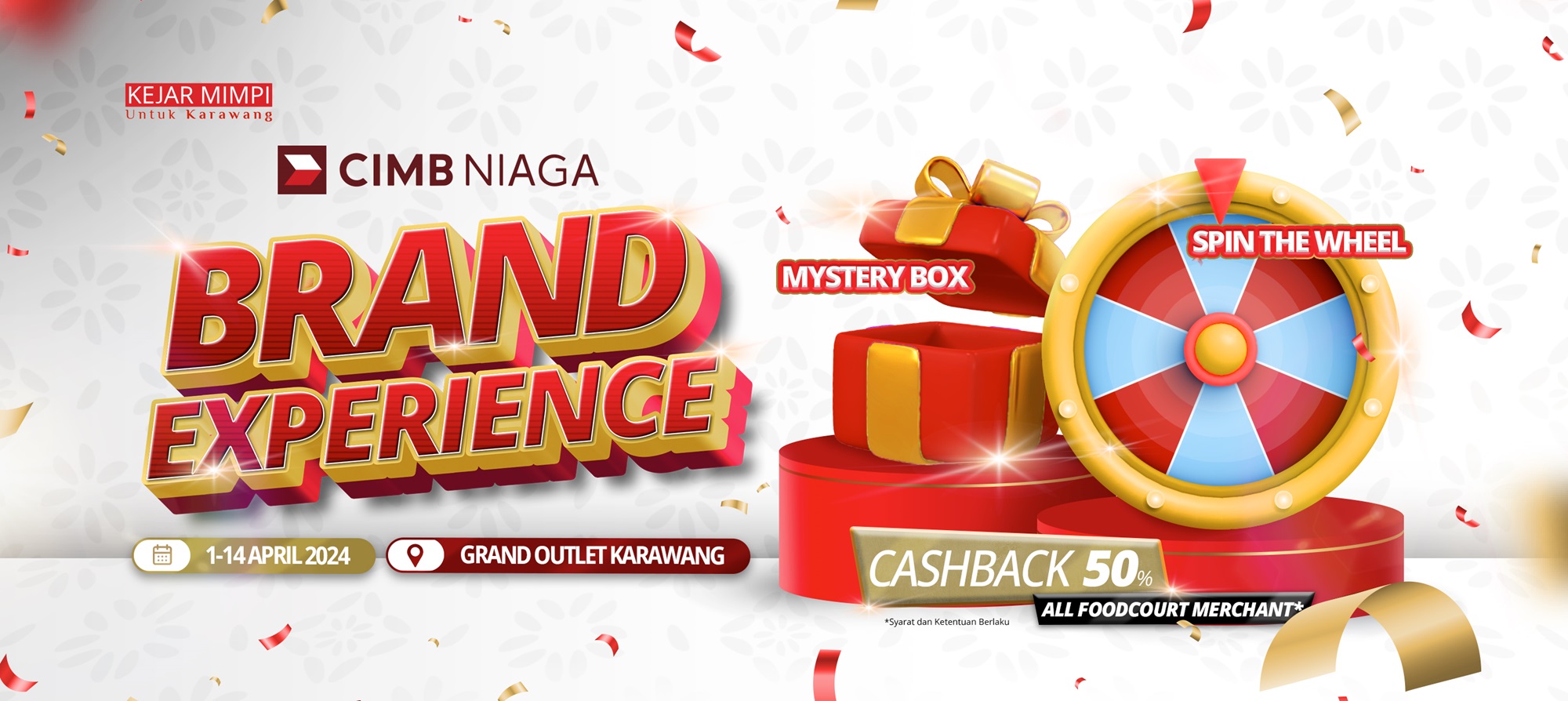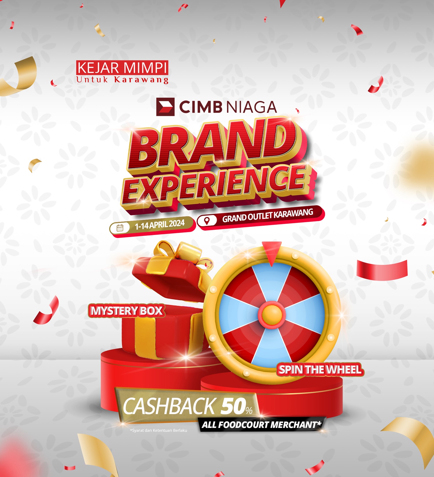 Mari bergabung dalam Brand Experience Grand Outlet Karawang yang menghadirkan beragam penawaran terbaik dalam memenuhi pengalaman belanja Anda untuk mengeksplorasi pengalaman perbankan dan solusi finansial terkini bagi warga Karawang dan sekitarnya!