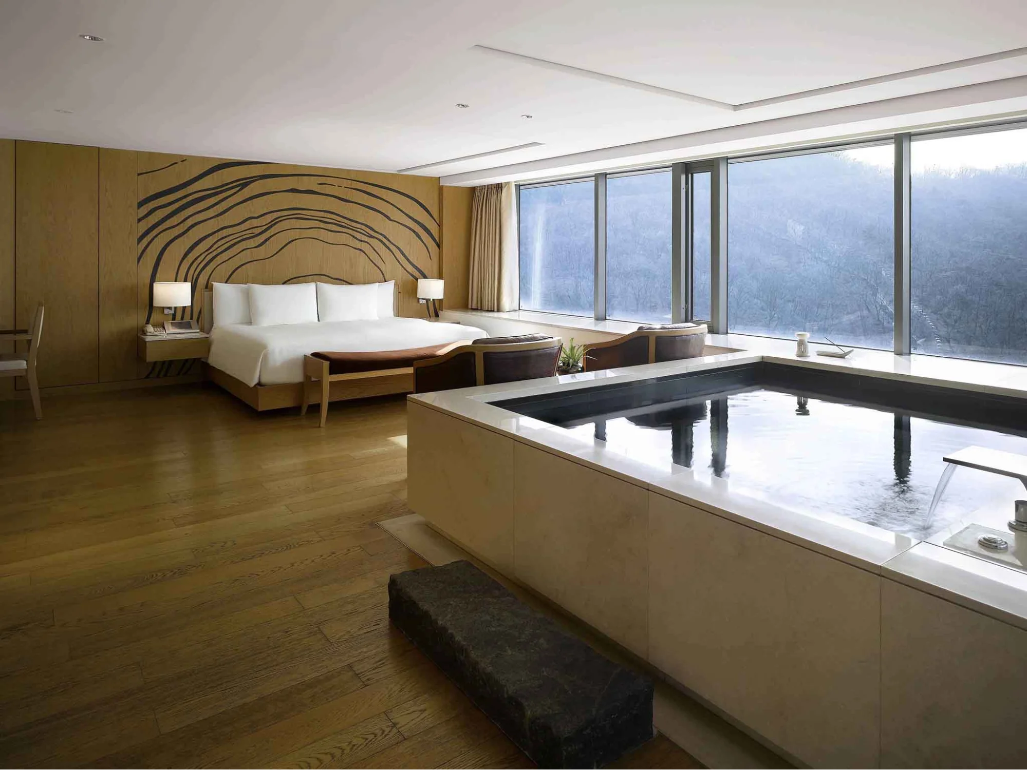 Range harganya mulai dari Rp2.800.000-an per malam untuk kamar tipe superior, sekitar Rp3.100.000-an jutaan untuk kamar tradisional gaya Korea, hingga sekitar Rp6.500.000-an untuk kamar suite premier.