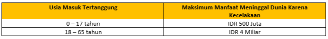 Tabel Manfaat Asuransi - Jika Tertanggung Meninggal Dunia Karena Kecelakaan