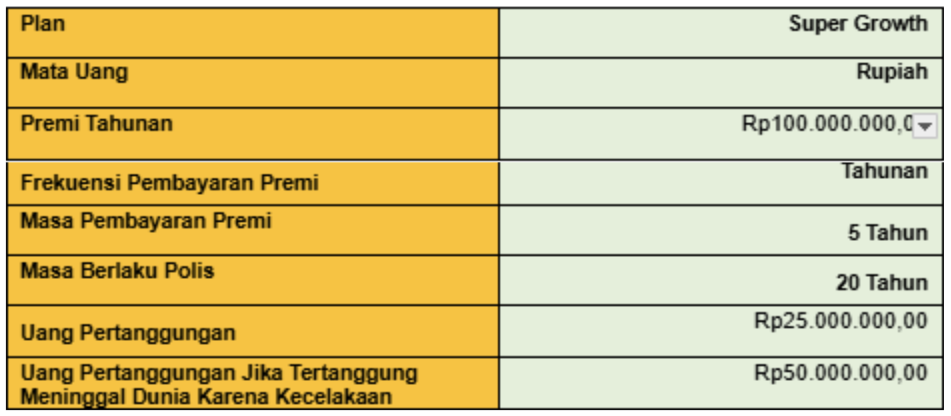 ** Uang pertanggungan meninggal dunia dihitung dengan asumsi Tertanggung meninggal di akhir tahun polis.
