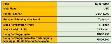 Penanggung akan membayarkan sejumlah nilai pertanggungan Manfaat Meninggal Dunia sebesar 100% (seratus persen) Uang Pertanggungan. Penanggung juga akan membayarkan sisa pembayaran dari Manfaat Tunai Tahunan yang belum dibayarkan dan Manfaat Akhir Kontrak. Pembayaran Manfaat Tunai Tahunan dan Manfaat Akhir Kontrak mengikuti periode jadwal pembayaran manfaat tersebut dan dibayarkan kepada Penerima Manfaat.