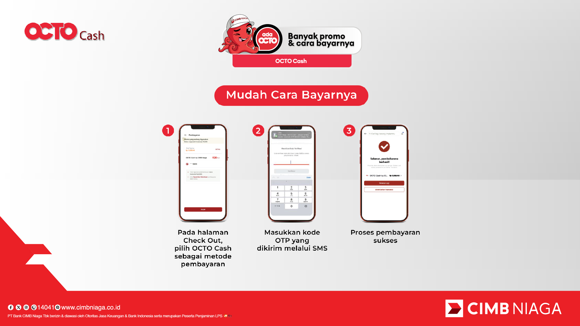 - Promo juga berlaku untuk Pengguna yang merupakan nasabah Syariah CIMB NIAGA dengan metode pembayaran CIMB OCTO Cash.
