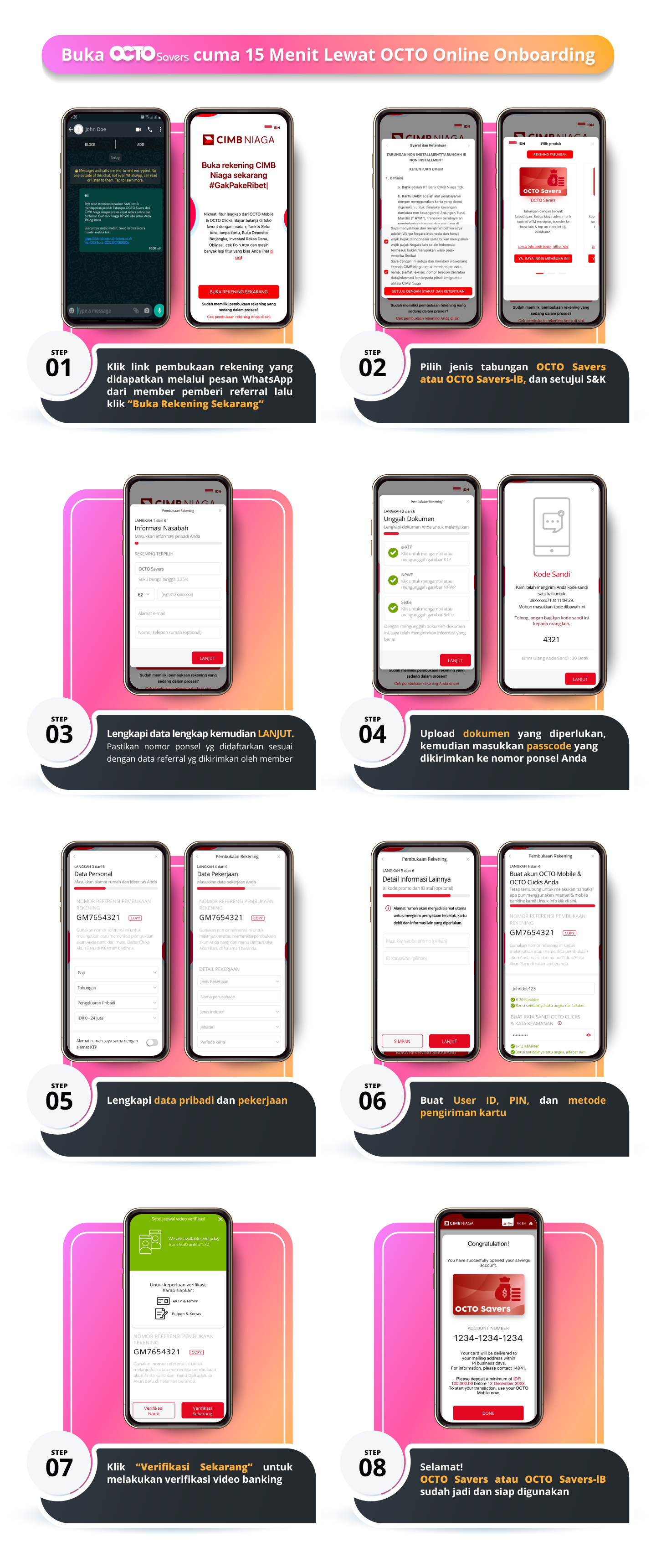 Rekening online kini menjadi salah satu solusi memiliki rekening tabungan di bank tanpa harus mengantre di kantor cabang lagi. Syarat buka Tabungan OCTO Savers cukup pakai e-KTP, NWP dan mengisi formulir melalui Octo Online Onboarding (threeo), rekening tabungan langsung jadi.