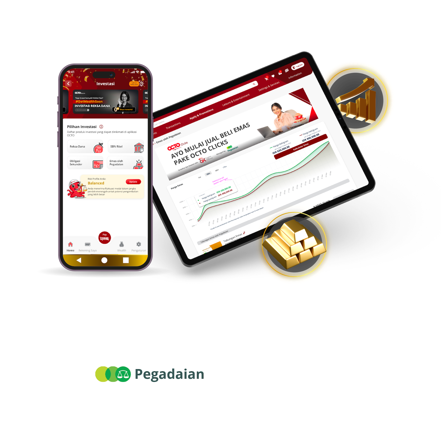 Investasi Emas dapat dilakukan melalui channel Aplikasi dan Website OCTO :