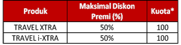 | Produk | Maksimal Diskon Premi (%) | Kuota* |