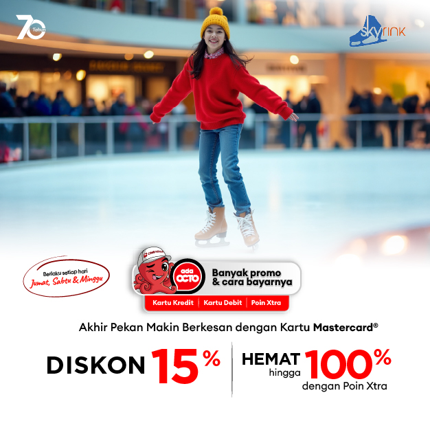 - Setiap Pemegang Kartu Kredit & Debit Mastercard CIMB Niaga yang melakukan pembelian Tiket SKY RINK berhak mendapatkan Diskon 15%