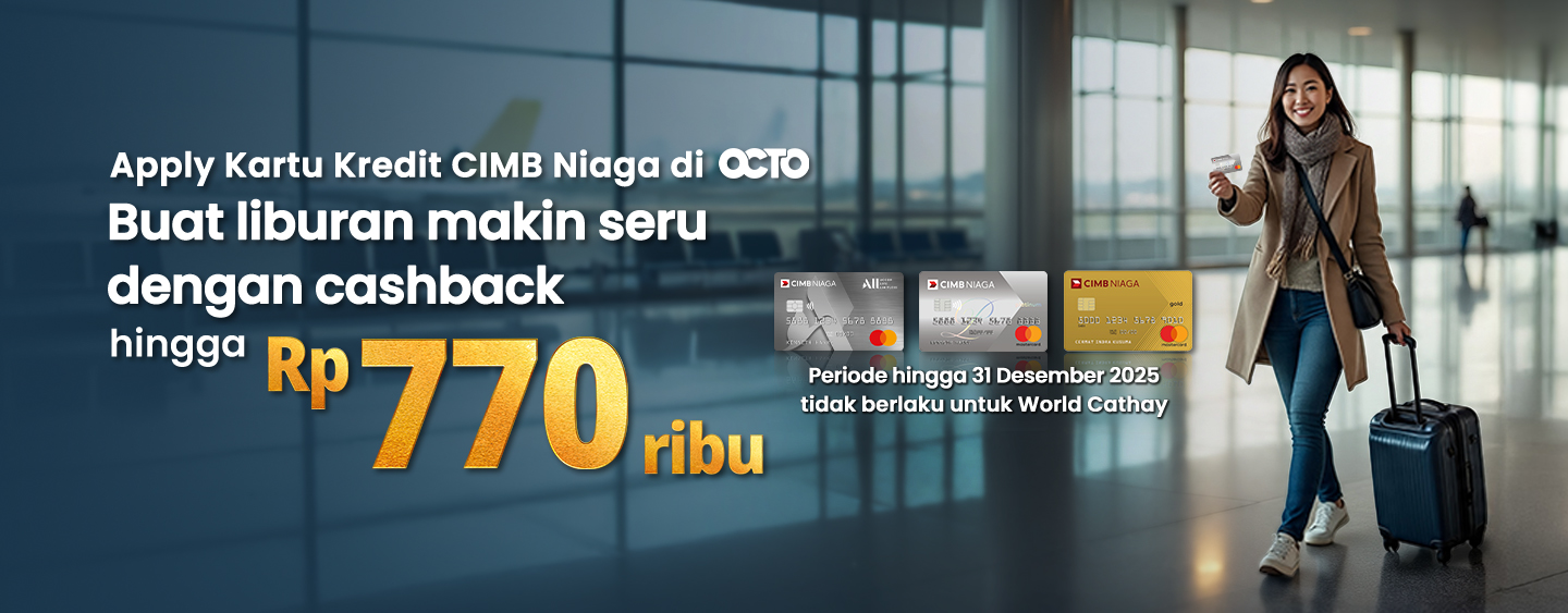 - Nasabah baru Kartu Kredit CIMB Niaga yang Kartu Kredit Utama (Primary) disetujui pada periode 1 Juni – 31 Desember 2025 (sebelumnya tidak pernah memiliki Kartu Kredit CIMB Niaga)