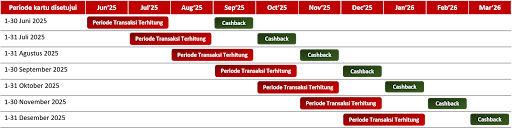 - Periode Transaksi maksimal 1 bulan sejak tanggal kartu disetujui
