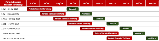 - Nasabah harus melakukan transaksi sesuai dengan periode yang ditentukan (lihat tabel periode program).