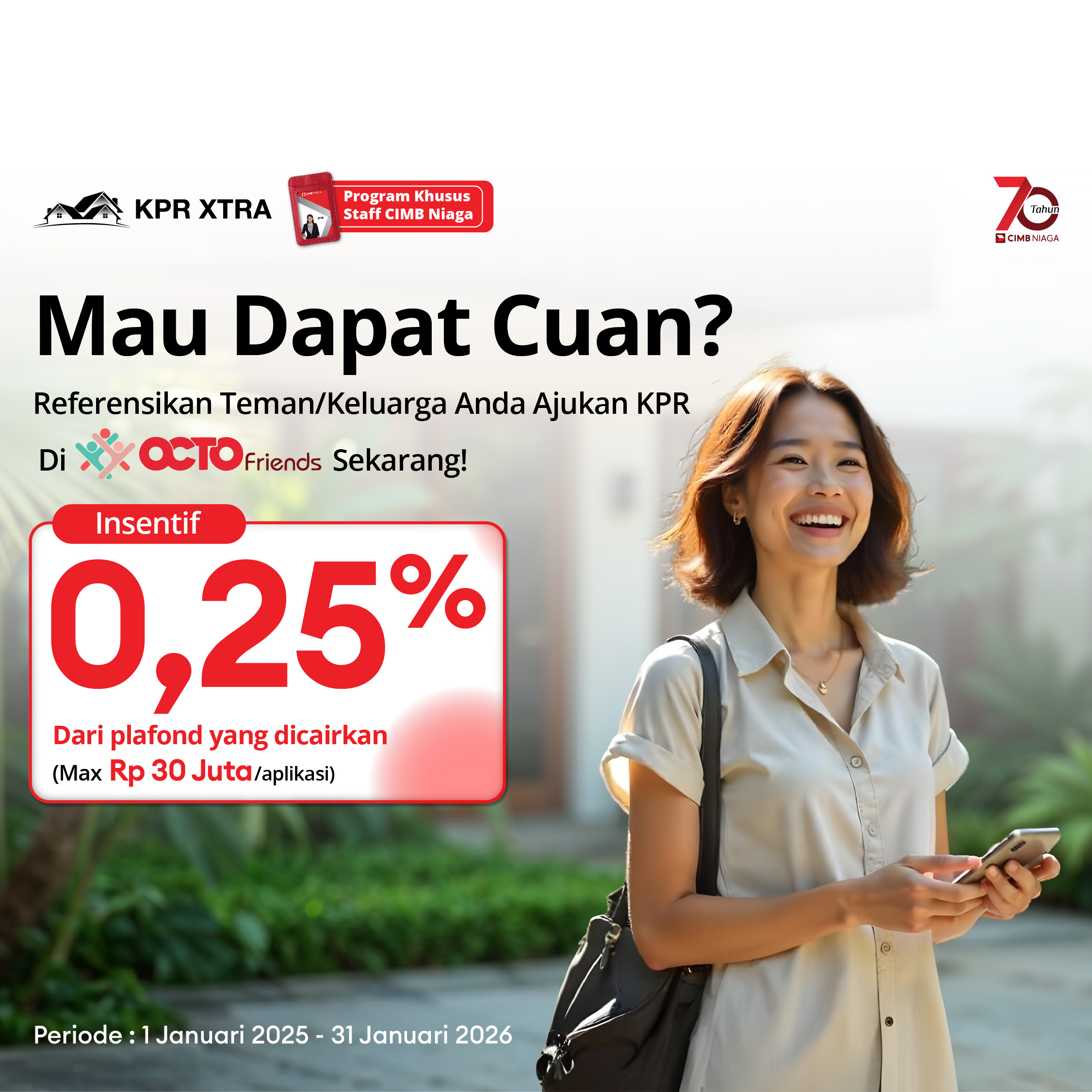 Program yang memberikan insentif/komisi bagi karyawan Bank CIMB Niaga yang mereferensikan teman, keluarga, saudara, nasabah atau relasi untuk mendapatkan fasilitas kredit agunan property di CIMB Niaga dan referensinya berhasil cair.