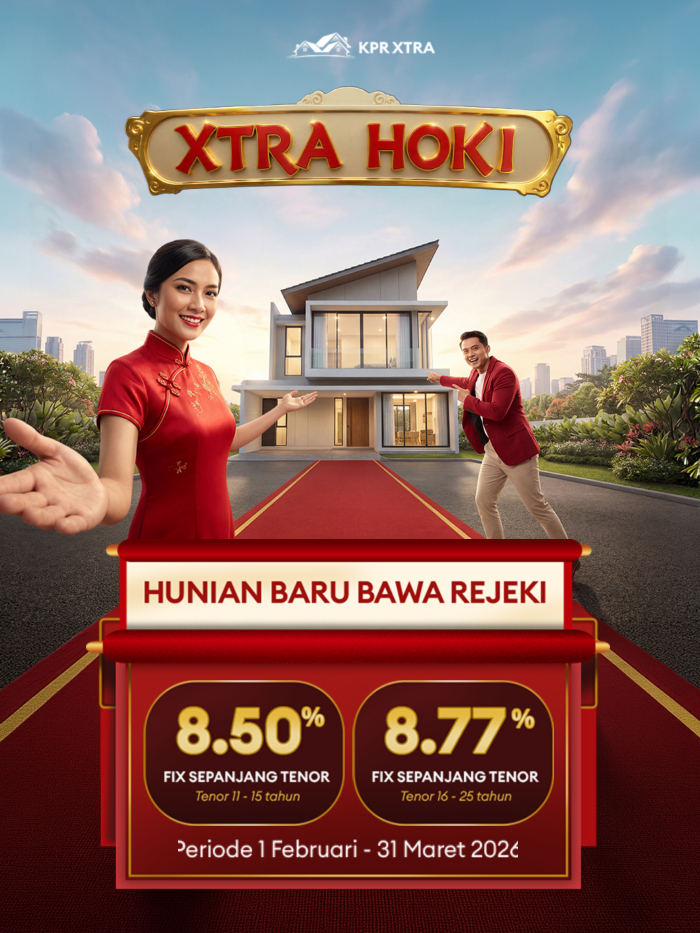 Jangan tunda lagi untuk raih HOKI 2026 di rumah baru, ajukan KPR Xtra sekarang!