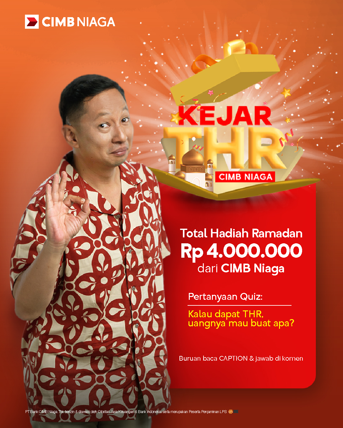 - Tulis jawaban kamu di kolom komentar instagram postingan quiz dengan format seperti ini: jawaban <spasi> mention teman kamu sebanyak-banyaknya <spasi> tulis hashtag #KejarTHRCIMBNiaga.
