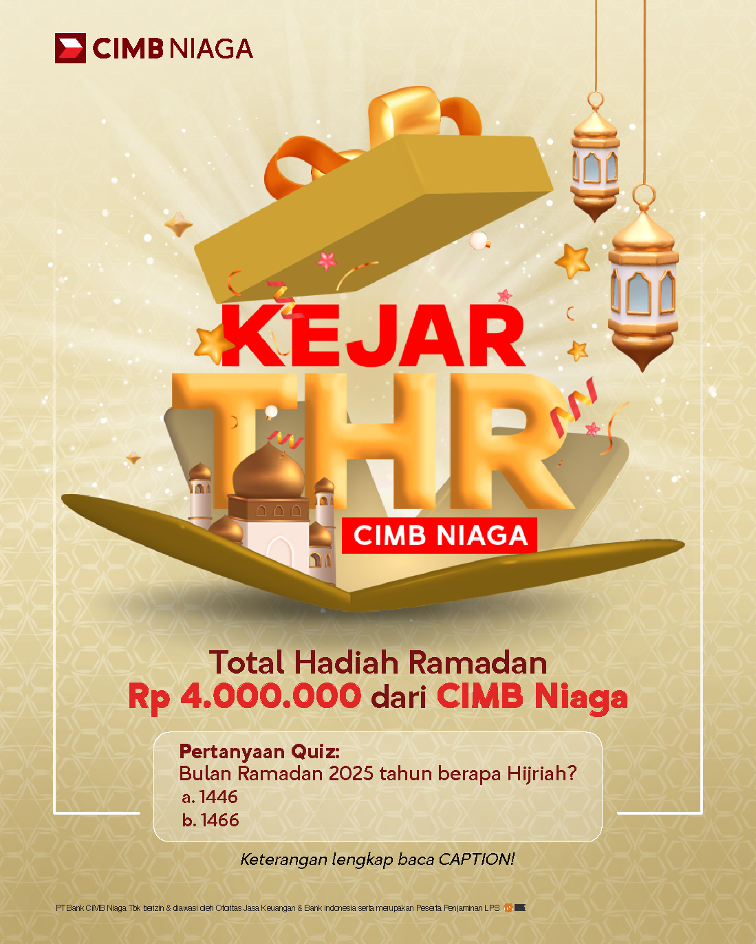 - Pemenang terpilih akan diumumkan di instagram story CIMB Niaga pada tanggal 18 Maret 2025. Pemenang akan langsung dihubungi oleh admin via Direct Message Instagram untuk konfirmasi data pemenang.