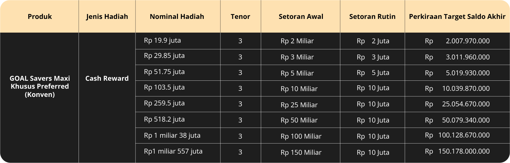 Fitur | Tabungan GOAL Savers / GOAL Savers iB - Maxi Preferred Hadiah Langsung Dengan Setoran Rutin Bulanan |
