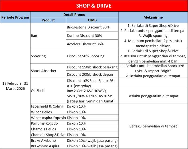 - Promo berlaku di seluruh outlet Shop & Drive.