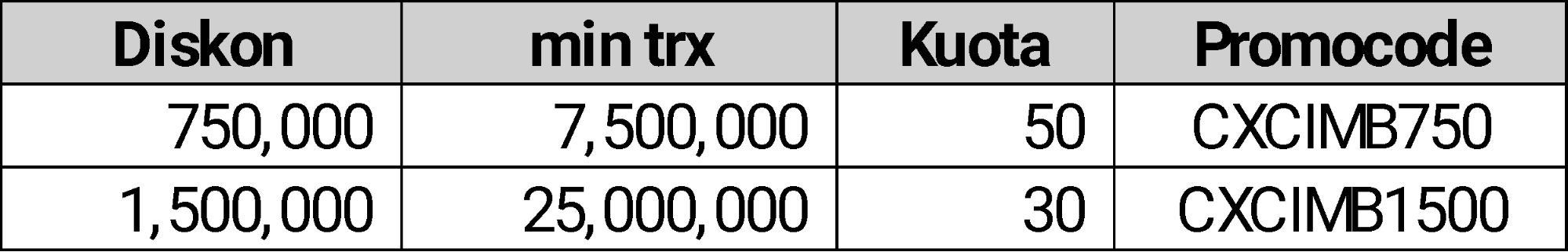 - Nasabah wajib input kode kupon sesuai dengan tiering promo diskon berikut: