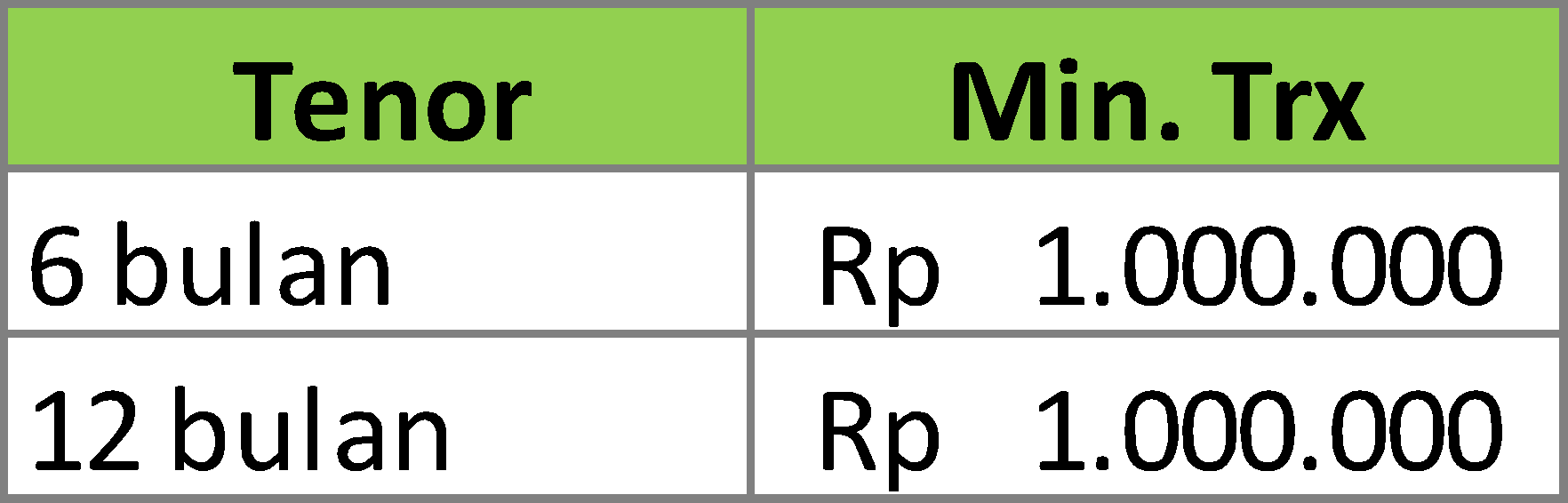 - Tidak berlaku split dan kelipatan transaksi