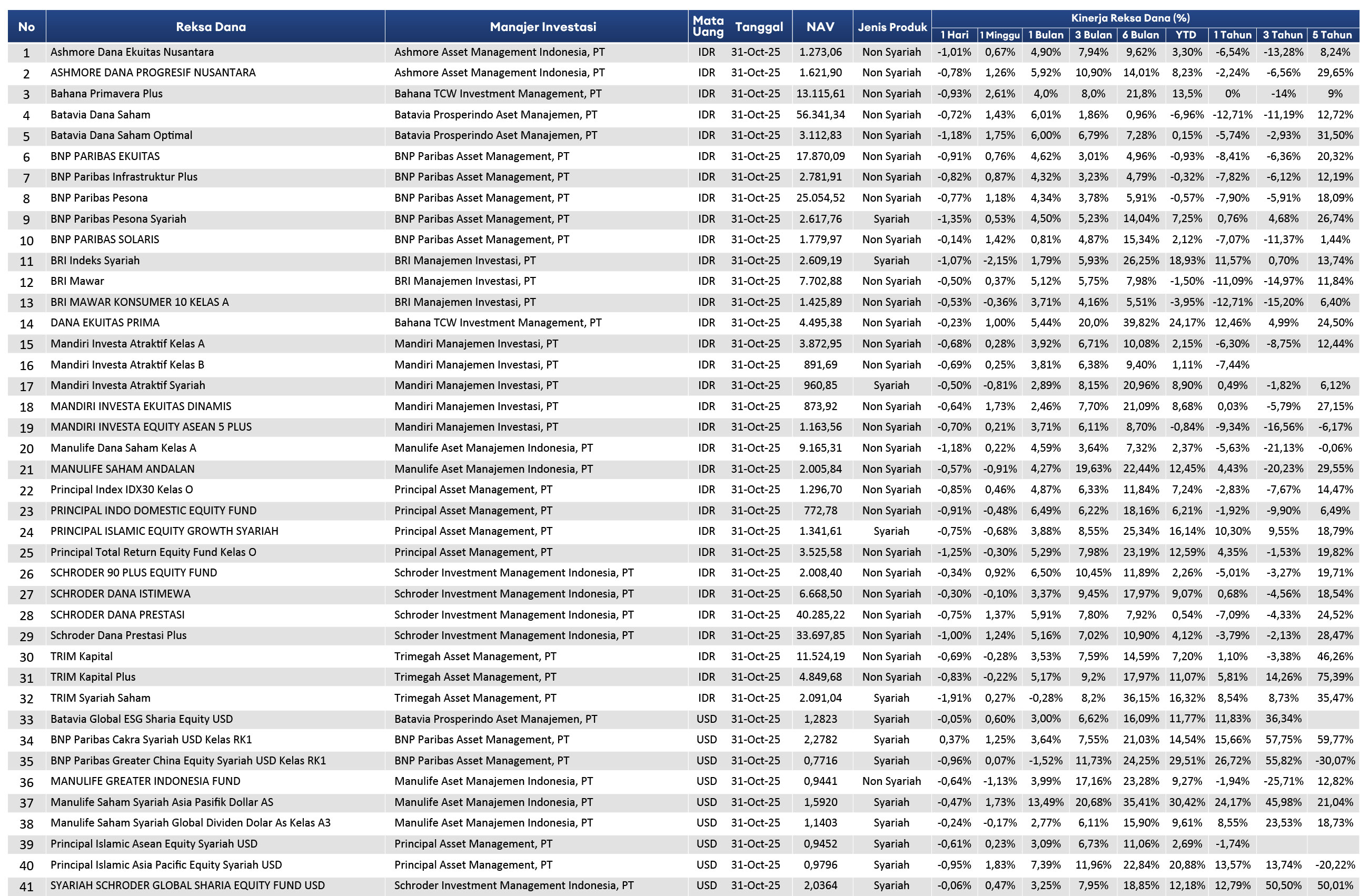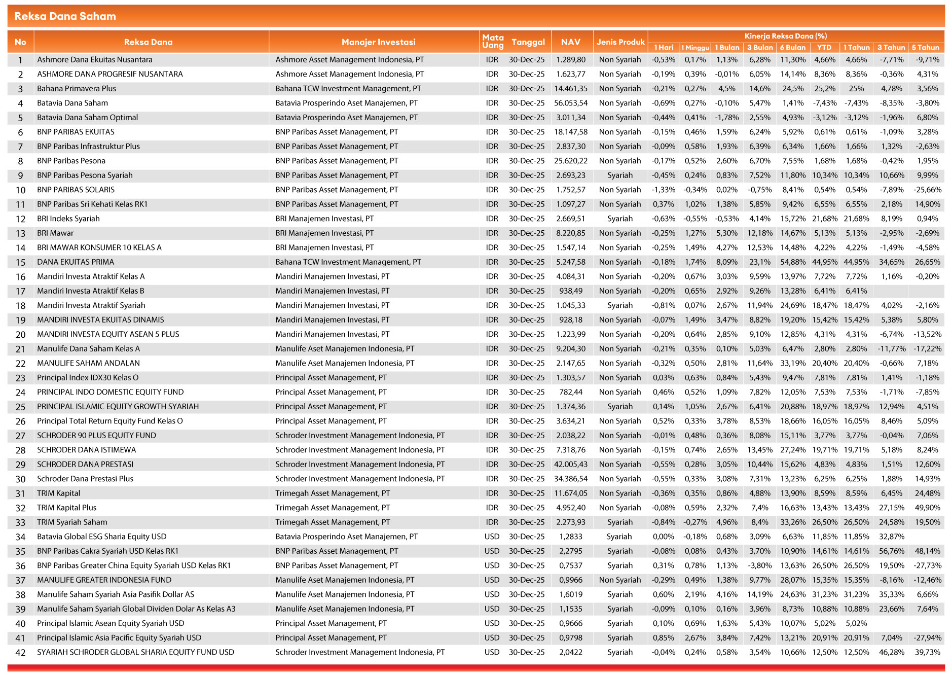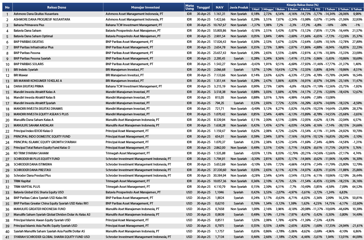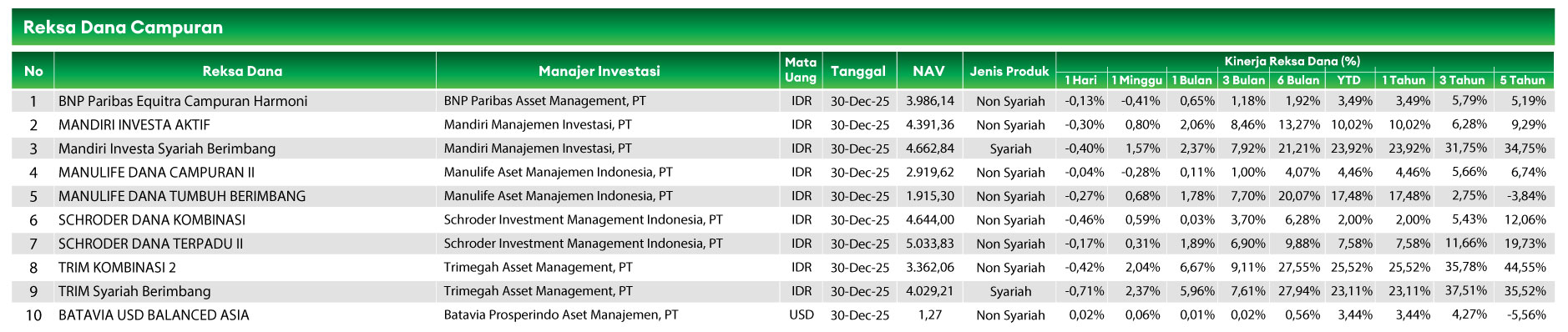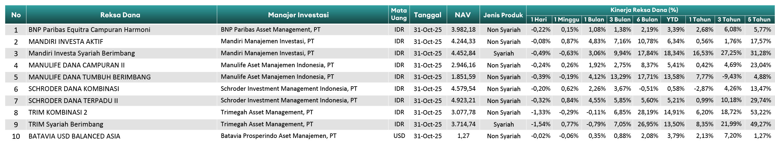 Daftar Produk & Kinerja Reksa Dana di bawah mengacu pada posisi tanggal yang tertera dan diperbarui secara bulanan.