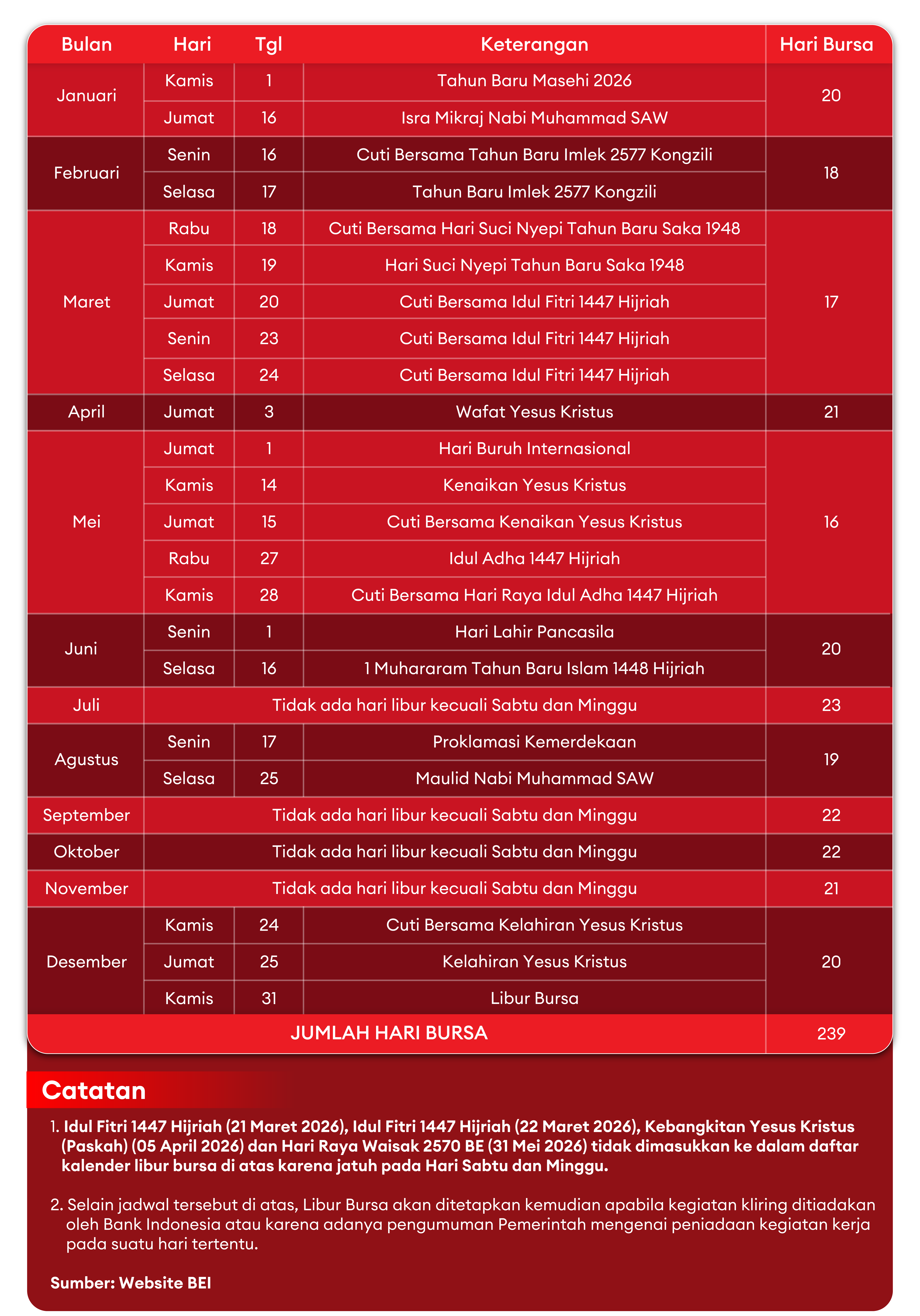 (Contoh untuk hari libur bursa Nyepi dan Idul Fitri 18-24 Maret 2026)