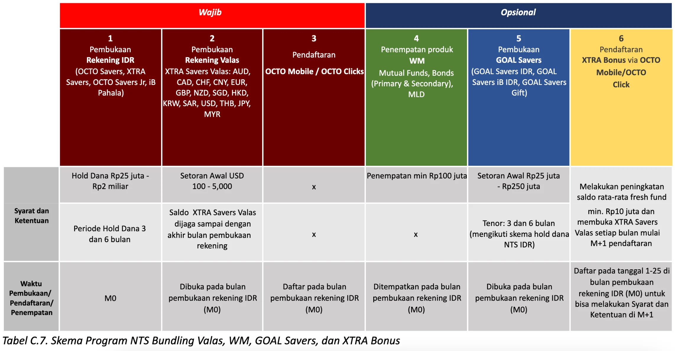 Nasabah wajib melakukan pembukaan tabungan XTRA Savers Valas dengan penempatan dana sesuai dengan skema program table C.7 di bulan pembukaan rekening IDR.
