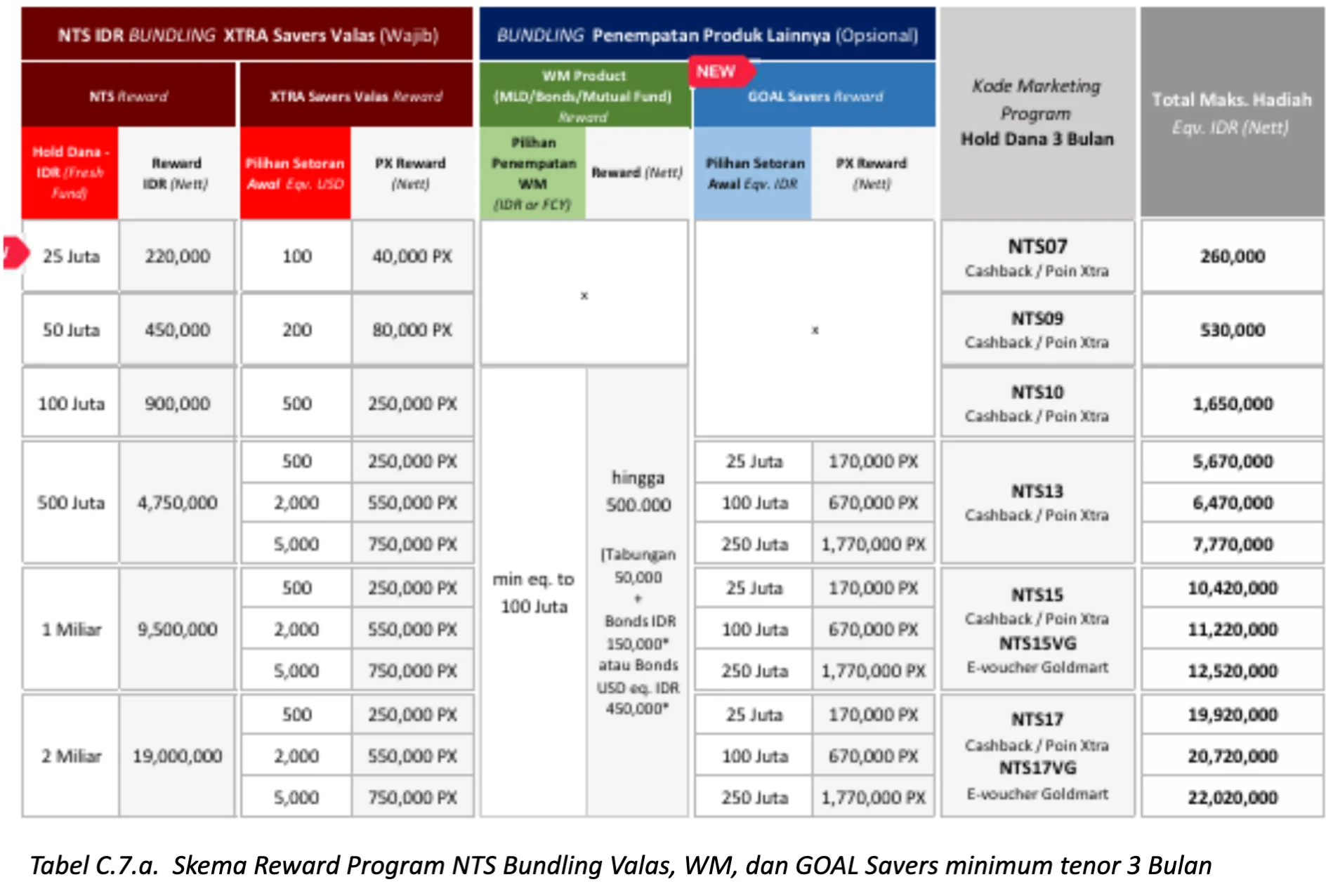 FCY (Min. placement eq. to IDR 320 juta) = Rp50 ribu dari NTS Reward + eq.Rp450 ribu dari Bondatastic Reward - Treasury