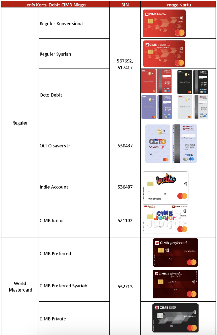 d. Daftar Kartu Debit CIMB Niaga Mastercard