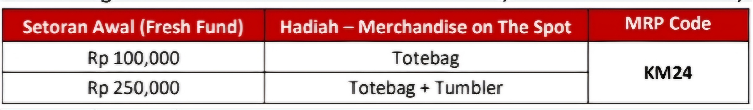 2. Rekening yang dibuka wajib melakukan input MRP Code KM24 (tanpa MRP Code maka nasabah tidak eligible mendapatkan reward skema program).
