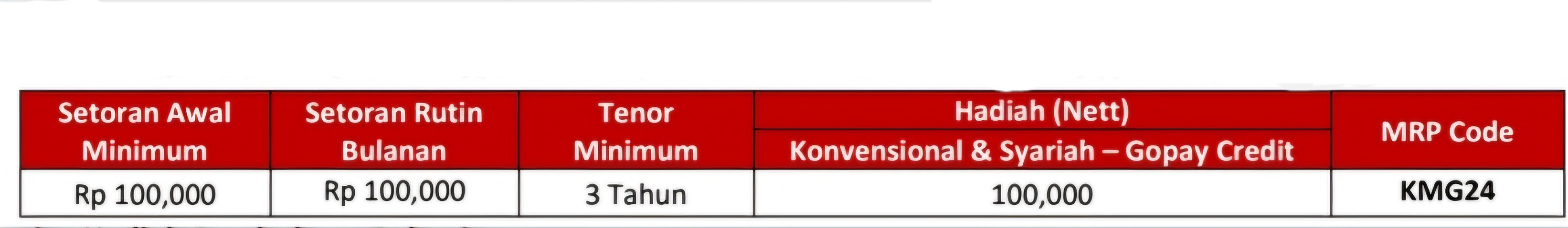 2. Rekening yang dibuka wajib melakukan input MRP Code KMG24 (tanpa MRP Code maka nasabah tidak eligible mendapatkan reward skema program).