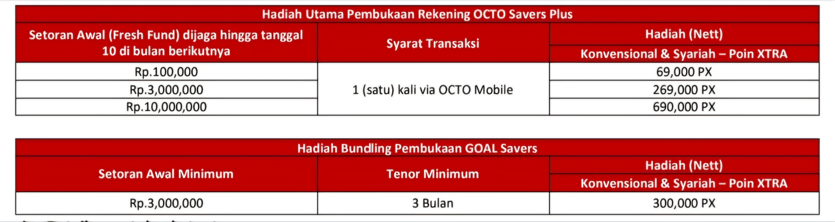 5. Apabila nasabah juga membuka rekening GOAL Savers pada bulan pembukaan rekening OCTO Savers+, maka akan diberikan hadiah tambahan, yang berlaku bagi: