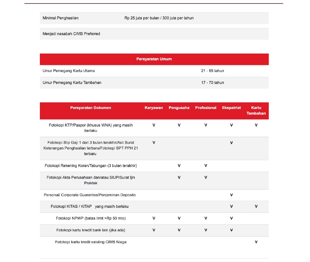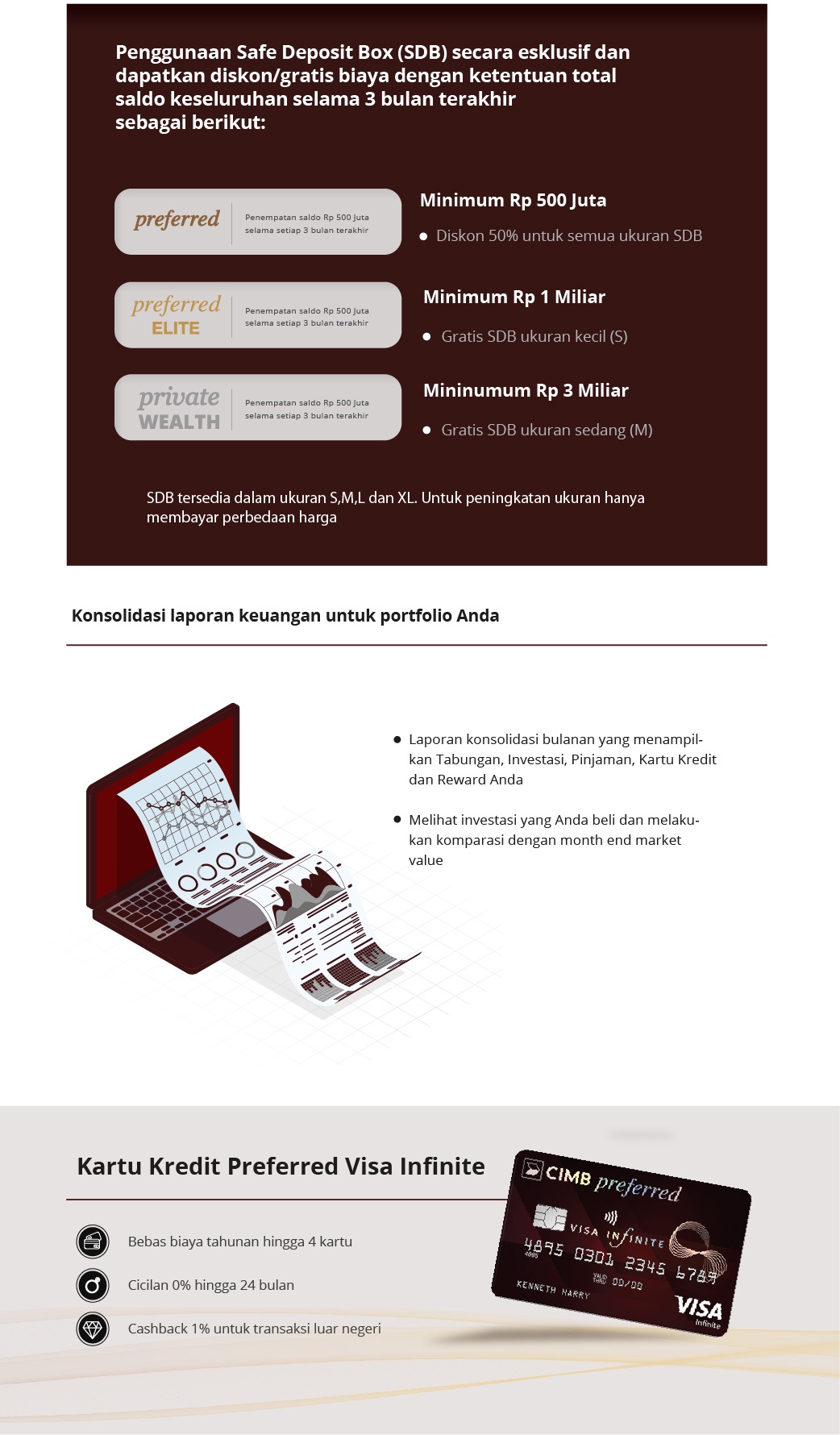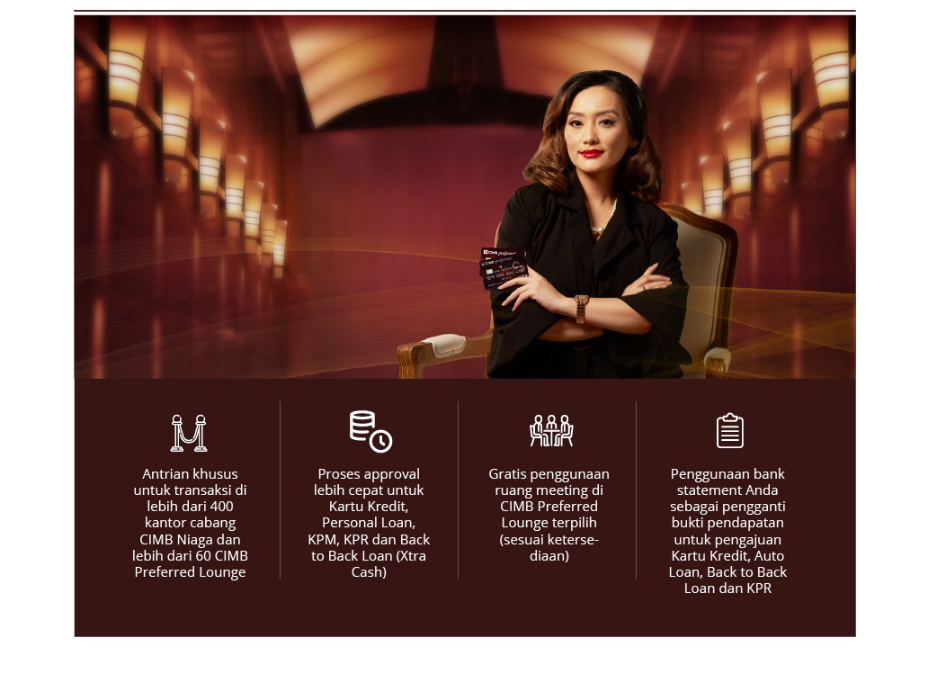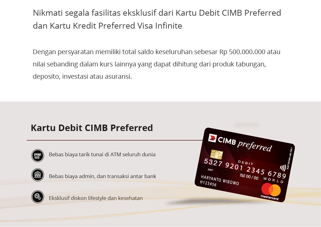 Bebas iuran tahunan seumur hidup sepanjang pemegang kartu menjadi nasabah CIMB Preferred.