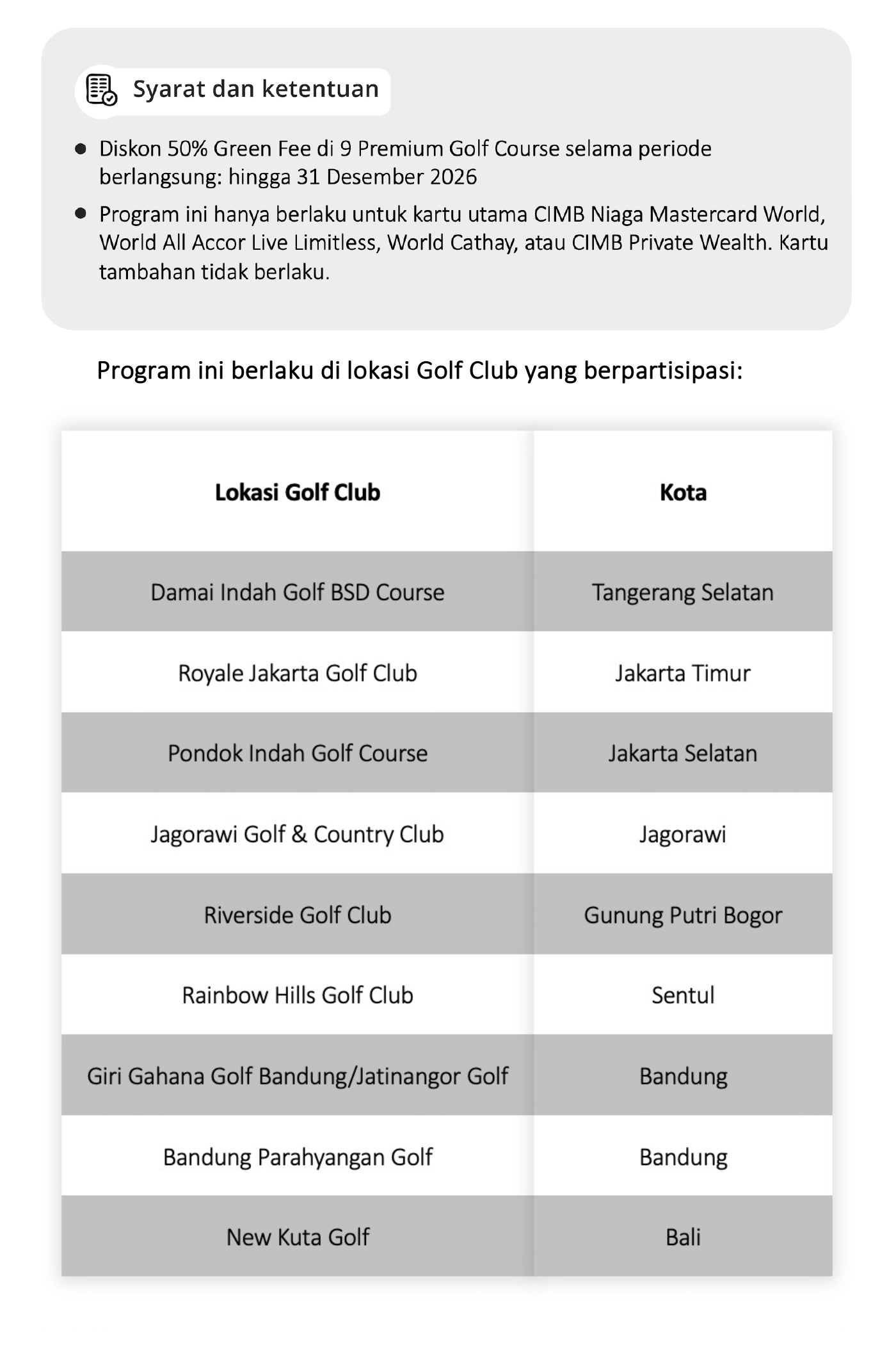 Klik di sini untuk kriteria pemegang kartu yang dapat melakukan reservasi serta syarat dan ketentuan reservasi
