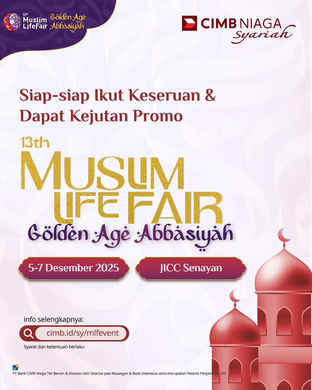 | Buka rekening Tabungan iB/ Giro iB min Rp 200.000,- dapat 1 tiket masuk Muslim Life Fair dan Wakaf Rp10.000 | 1. Hanya untuk nasabah segmen Consumer dan atau EBB 2. Setoran awal minimal IDR 200Rb atau equivalennya jika denominasi non IDR 3. Berlaku untuk rekening denominasi IDR dan Valas 4. Tidak berlaku kelipatan, hanya berlaku 1x pembukaan rekening pada 1 CIF 5. Hadiah langsung diberikan saat event 6. Stok Hadiah terbatas, First Open Acct, First Serve 7. Hanya untuk akad Mudharabah |